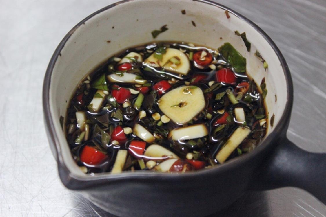 大蒜、辣椒切碎,放入一小撮切碎的新鲜香椿,淋入生抽后放置20分钟入味即可。
