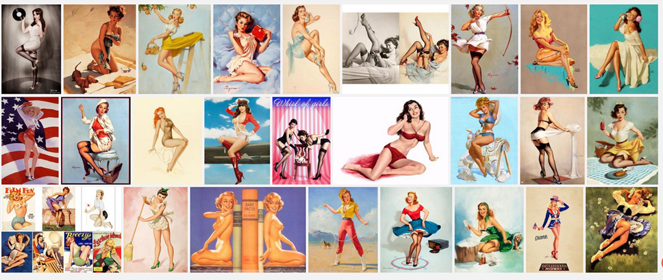 在1941年的时候,pin-up girl的名称首次出现,然而这样的绘画方式(也就是使用复古的方式画出一名美丽身段窈窕的女性,通常会大量裸露身体,身着泳装或内衣)可以追溯到1890年。