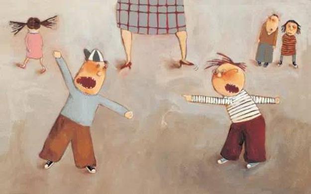 "我玩积木,她也要玩,我不给她,她就打我。"
