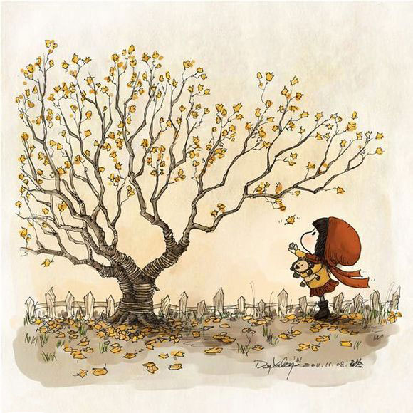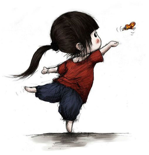 春天给她扎起小辫子,带她到郊外抓蝴蝶。