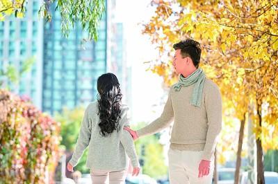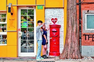 2021年5月20日,有上海最“甜”马路之称的甜爱路上,不少情侣专程前来打卡。王冈摄/光明图片